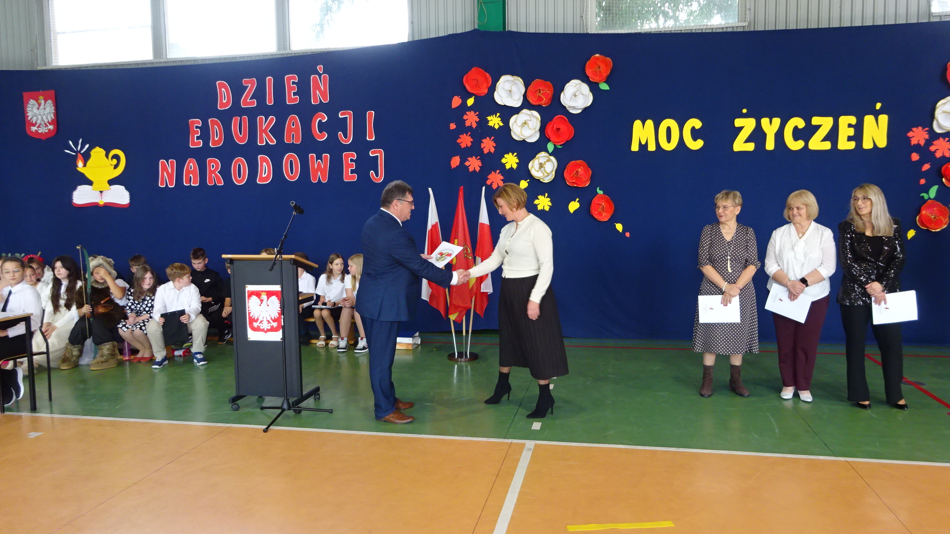 Część oficjalną rozpoczęły przemówienia. Zastępca burmistrza podziękował nauczycielom za ich codzienny wysiłek i zaangażowanie. Przewodniczący Rady Rodziców dołączył się do podziękowań, zaznaczając, jak ważna jest dobra współpraca między rodzicami a szkołą.